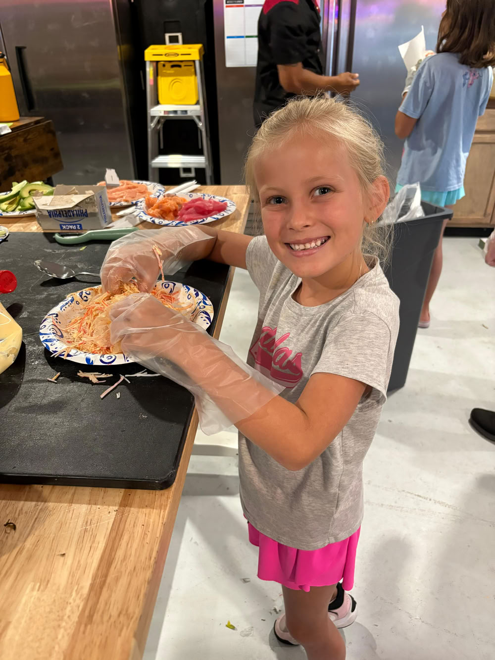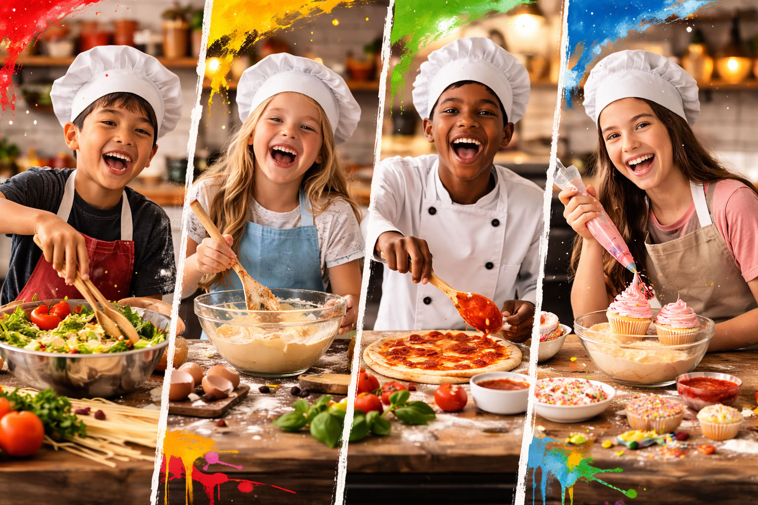 A full day of cooking, creativity, and fun. Kids get to jump in, learn new skills, try new flavors, and leave proud of what they created.